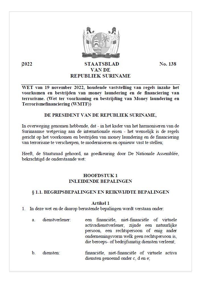 Click the Images below to view files S.B.-2023-no.-159-Besluit-Grondconversie-2023 Wet-Notarisambt-2019 Suriname S.B.-2022-no.-138-WET-voorkoming-en-bestrijding-money-laundering-en-financiering-terrorisme